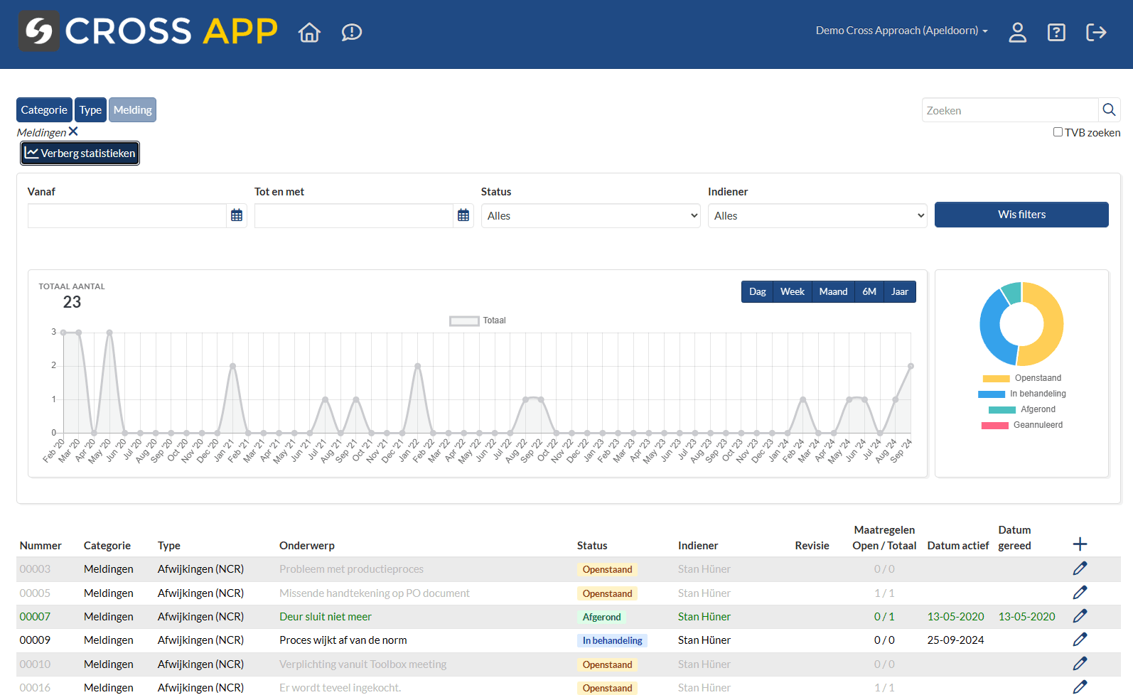 De meldingenmodule heeft een eigen dashboard gekregen, waarmee in één oogopslag zichtbaar is: